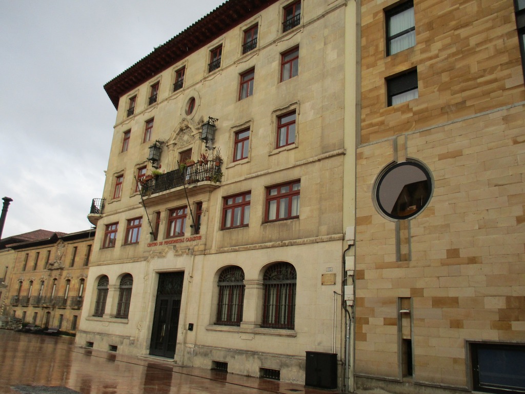 Finca Urbana. Casa número 5 de la Plaza de Alfonso II el Casto o de la Catedral, en esta ciudad de Oviedo,..formada de sótano, destinado a almacén, planta baja y piso primero, donde se hallan instaladas las oficinas de la Caja de Ahorros de Asturias, tres pisos más distribuidos el segundo y cuarto en cuatro viviendas cada uno, el tercero en cinco, y un quinto o buhardilla con carboneras para el servicio de los pisos. Tiene un patio de luces desde el sótano que recorre toda la altura del edificio y ocupa 53,51 m2 y otras tres de 7,70 m2, 10,15 m2 y 6,44 m2, que dan luz respectivamente a los pisos segundo, tercero, cuarto y buhardilla.