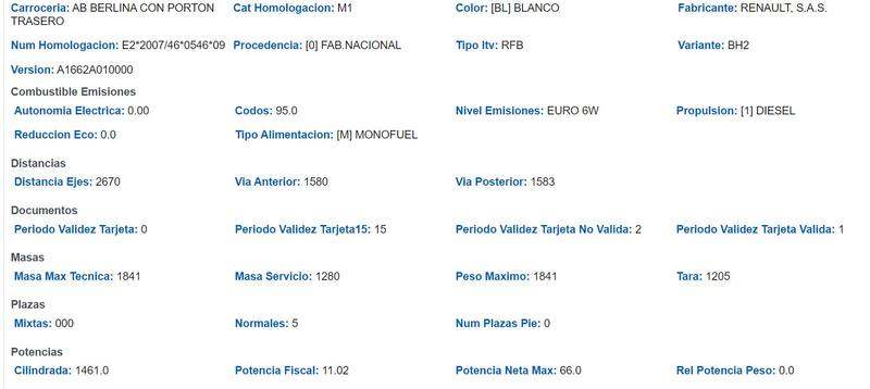 TURISMO NACIONAL/IMPORTACION RENAULT MEGANE, matrícula 4540KHP (8 años), 5 plazas, Motor diesel 1461 cc, Uso: particular, Bastidor VF1RFB00260039231.