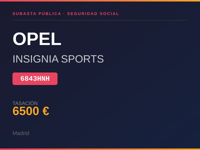 TURISMO DE COLOR MARRON MODELO OPEL INSIGNIA SPORTS FAMILIAR 2.0 DIESEL PEQUEÑOS GOLPEZ Y ARAÑAZOS POR DISTINTAS ZONAS DE LA CARROCERIA NO TIENE LLAVE NI DOCUMENTACION.. Lugar de subasta: CL AGUSTIN DE FOXA 28 30 MADRID
