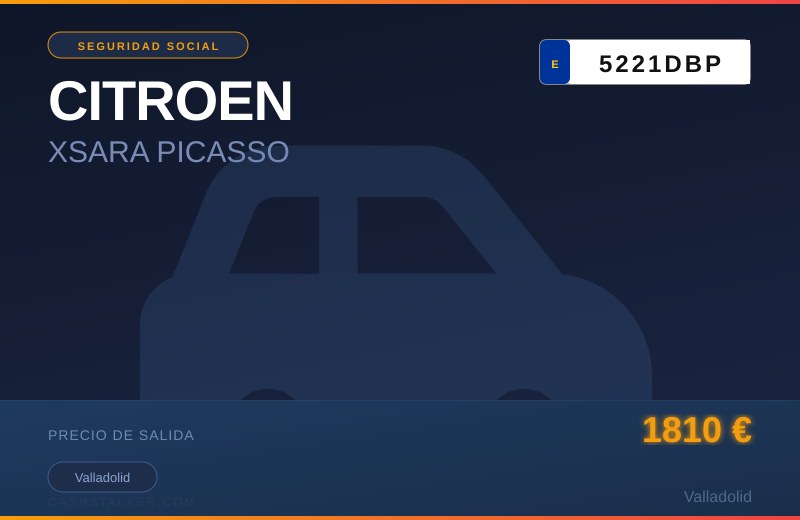 EL VEHÍCULO SE ENCUENTRA DEPOSITADO EN EL PARQUE MUNICIPAL "EL PERAL", VALLADOLID. Lugar de subasta: CL BOSTON 6 VALLADOLID