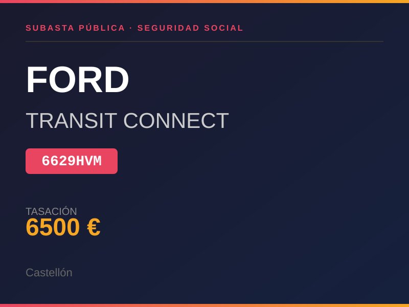 ITV CADUCADA DESDE EL 17/10/2025 EL INTERIOR DEL VEHÍCULO SE ENCUENTRA EN BUEN ESTADO. LAS RUEDAS SE ENCUENTRAN EN BASTANTE BUEN ESTADO. LA CARROCERÍA TAMBIÉN SE ENCUENTRA EN BUEN ESTADO, AUNQUE CABE DESTACAR QUE TIENE DOS ARAÑAZOS, UNO DE ELLOS EN LA PUERTA DELANTERA IZQUIERDA, EL OTRO ENEL BAJO IZQUIERDO Y UN PEQUEÑO GOLPE EN LA ALETA DELANTERA IZQUIERDA. EL VEHÍCULO TIENE TAPACUBOS EN TODAS SUS RUEDAS. CUENTA CON AUTORRADIO. EL SISTEMA DE REFRIGERACIÓN FUNCIONA CON NORMALIDAD. TIENE 1 JUEGO DE LLAVES FICHA TÉCNICA FALTA EL PERMISO DE CIRCULACIÓN. CUENTAKILOMETROS MARCA 246.218 KM SE CELEBRA SEGUNDA SUBASTA. Lugar de subasta: AV DEL MAR 6 6º CASTELLÓ DE LA PLANA